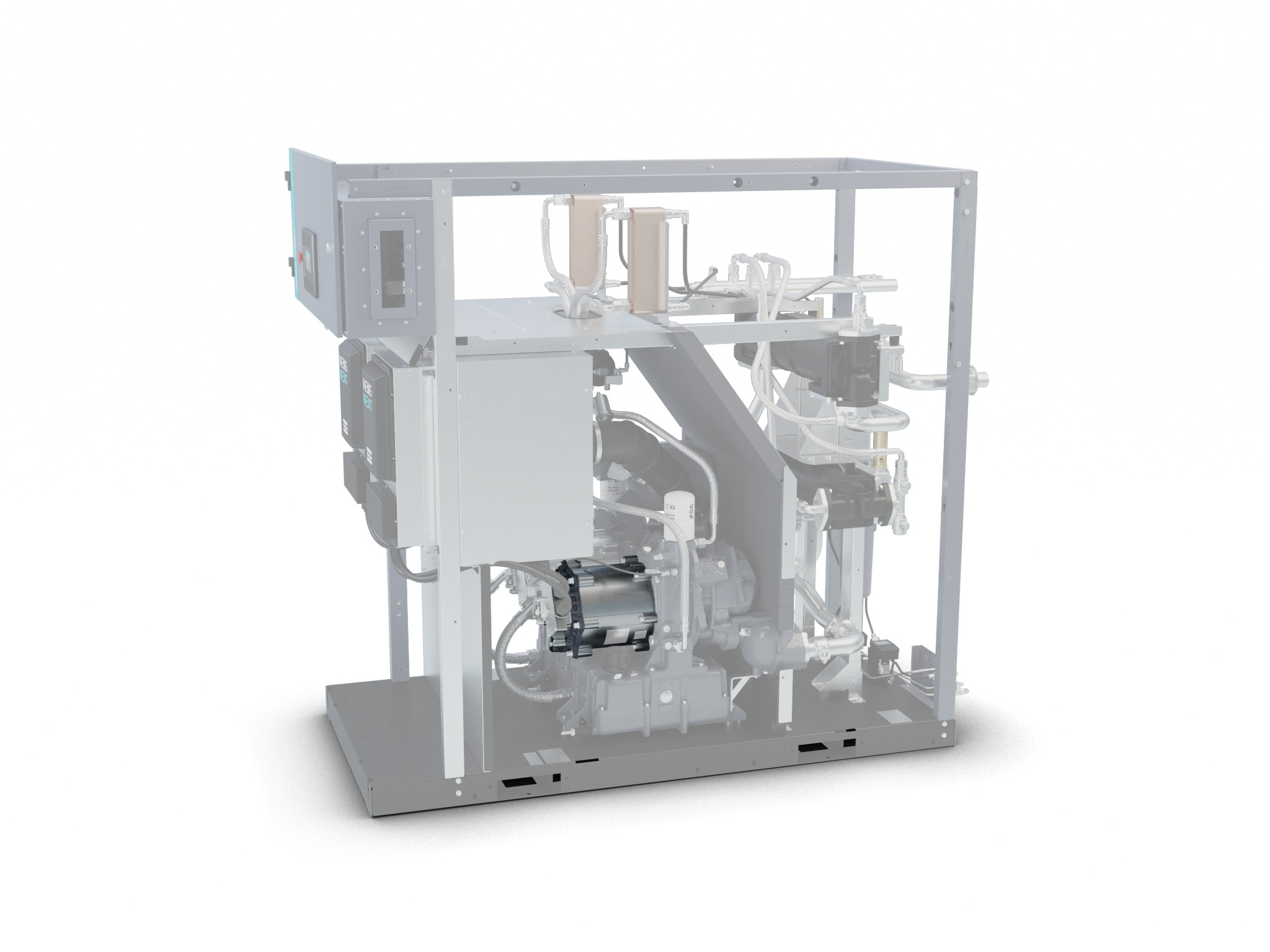 – Two direct coupled permanent magnet drive motors for the low- and high-pressure elements, each with its own frequency converter